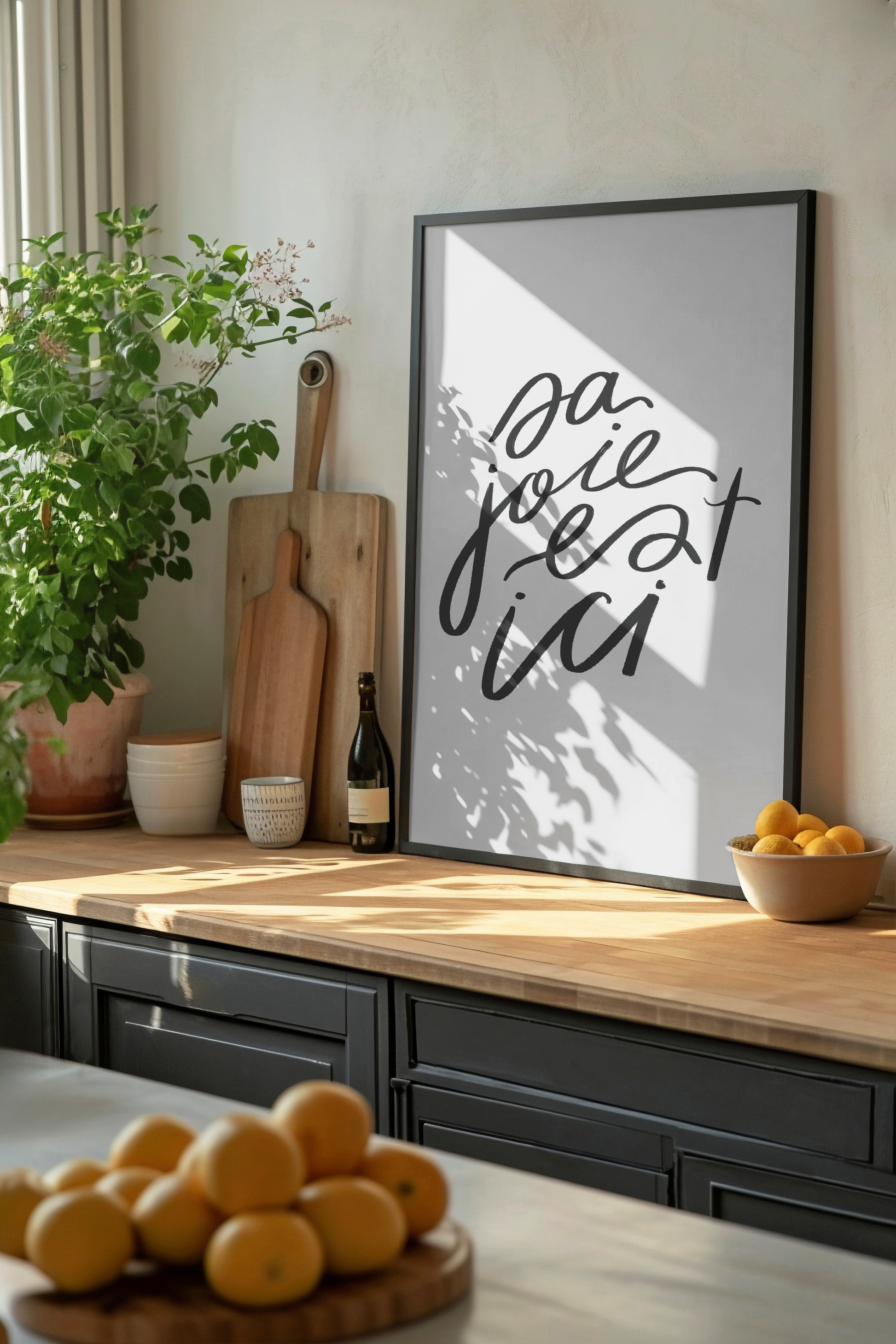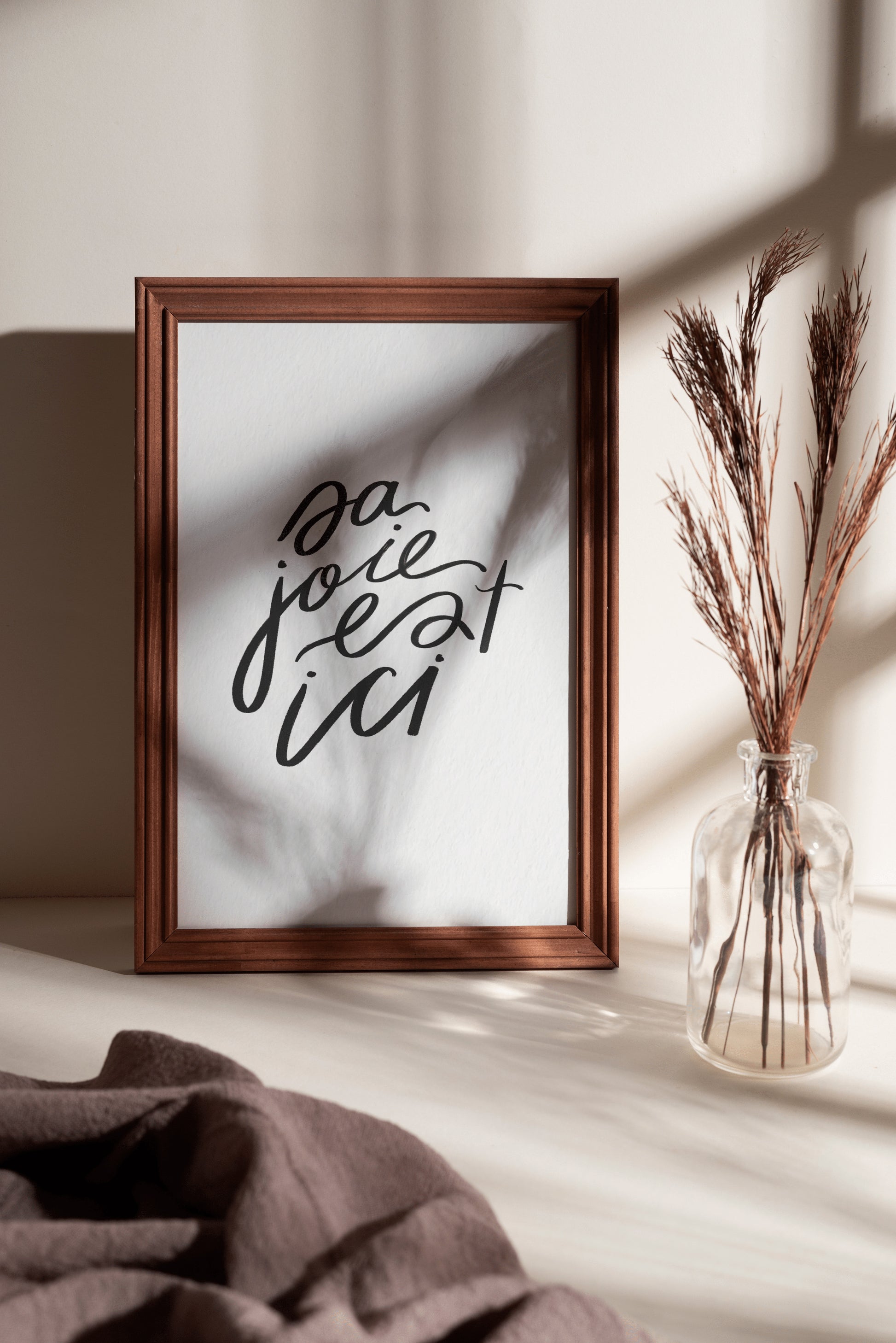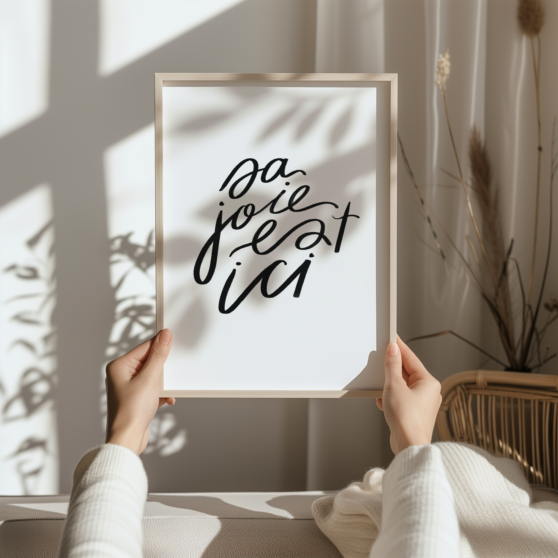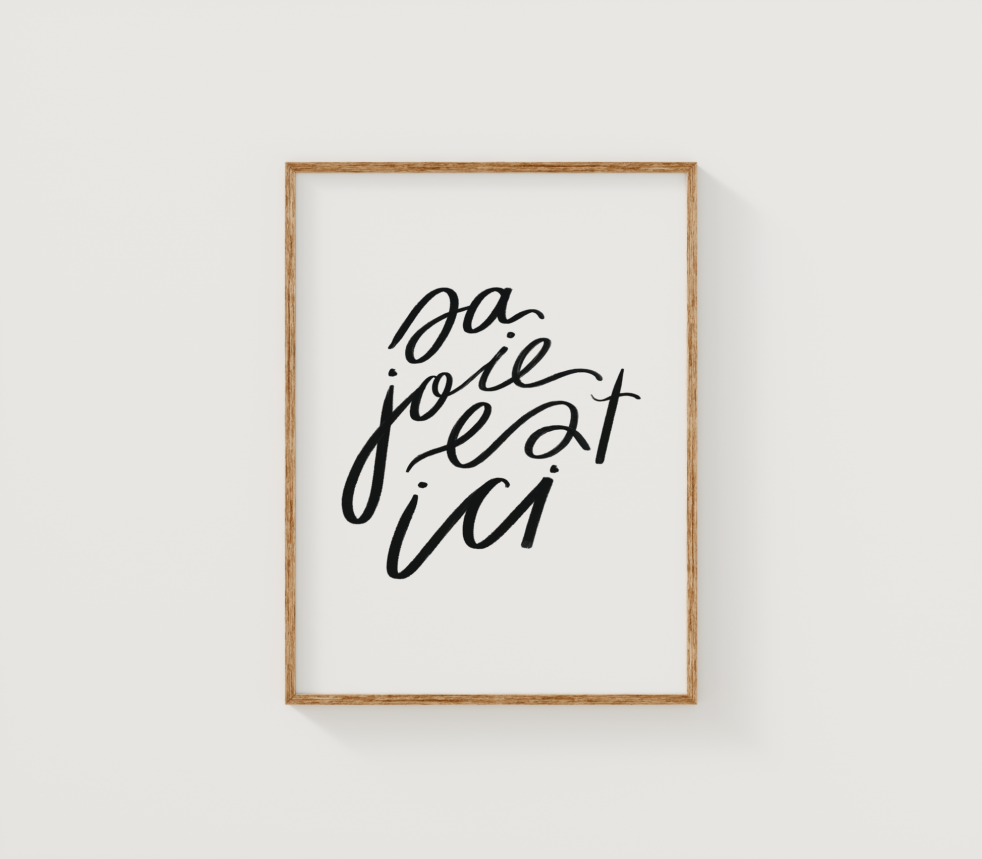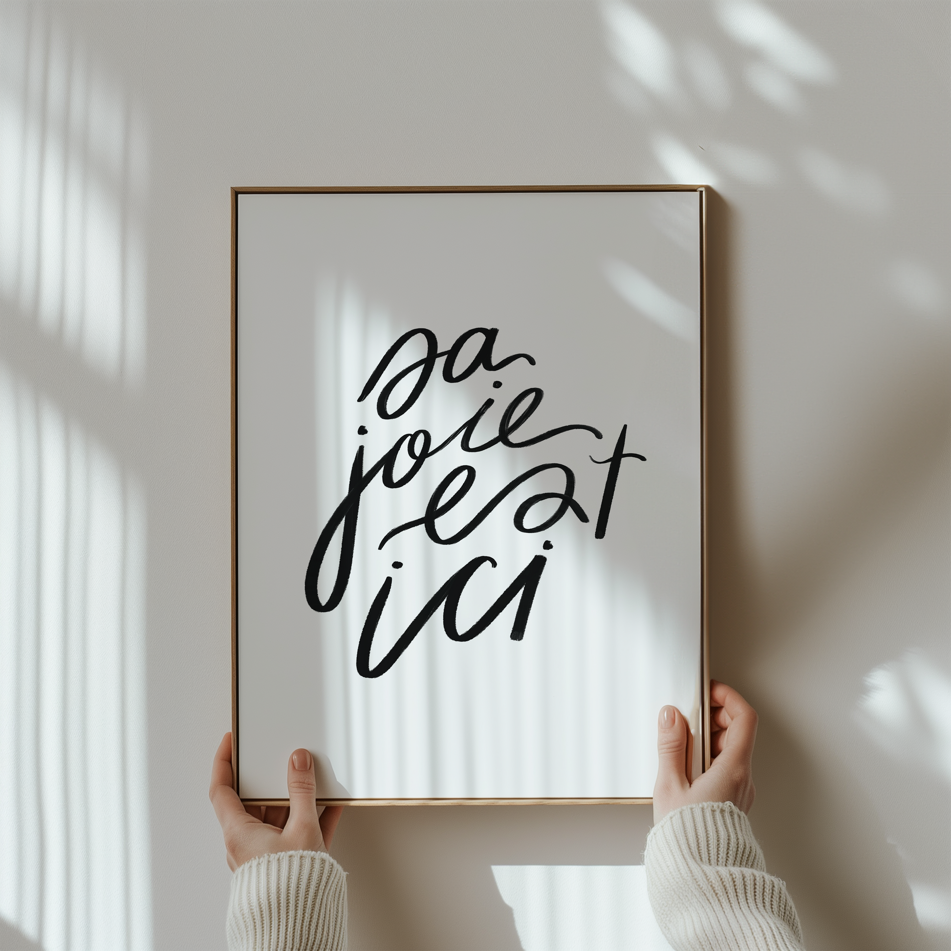 Une affiche minimaliste et remplie de sens, calligraphiée à la main avec cette vérité simple et puissante : « Sa joie est ici ». Un rappel quotidien que la joie véritable ne dépend pas des circonstances, mais de la présence de Dieu dans nos vies. Placée dans ton salon, ta chambre ou ton espace de prière, elle diffusera douceur et lumière, tout en inspirant ton cœur à choisir la joie chaque jour. Un design épuré et intemporel, parfait pour apporter une touche spirituelle et authentique à ta décoration intérieure.